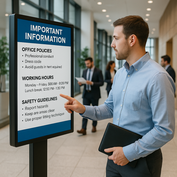 L'affichage obligatoire au sein d'une entreprise n'est pas seulement une question légale, c'est un enjeu de transparence et de sécurité pour vos employés. Dans cet article, découvrez les principales obligations d'affichage, les conséquences d'un non-respect et des solutions pratiques pour moderniser votre communication interne.