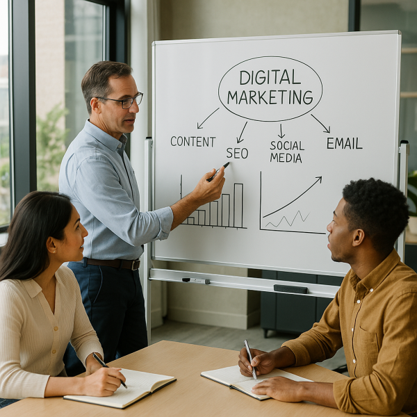 Il pilote la stratégie marketing digitale d'une entreprise, avec un focus sur les canaux numériques.